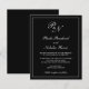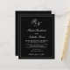 Invitación a bodas de estilo tradicional con un diseño sencillo y clásico, con su monograma inicial y sus nombres en una caligrafía elegante dentro de un borde delgado. Todos los elementos de diseño están en blanco sobre un fondo negro y pueden cambiarse en la herramienta de edición de diseño. Este elegante diseño es perfecto para un boda formal.
