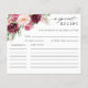 Elegante tarjeta de recetario Bridal Shower con hermosos detalles florales de acuarela en una mezcla de tonos burdeos, rosa, rubí, mauve y modernos detalles caligráficos escritos a mano. Diseño de coordinación de nuestras invitaciones a la ducha de novia "Romance Floral". Posibilidad de personalizar de secciones de texto como desee. Parte de nuestra colección "Romance Floral" con una variedad de productos de coordinación disponibles, incluyendo la tarjeta de solicitud de receta correspondiente. Visita la colección completa con este enlace: https://www.zazzle.com/collections/119632839578818651