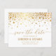 Invite a la familia y amigos a su boda con este elegante personalizable, guarde la tarjeta plana de fecha. Presenta falsos puntos de Relieve metalizado dorado, escritura elegante y tipografía simple. Personalice esta versión moderna para guardar la tarjeta de fecha agregando nombres, fecha y otros detalles. Este falso Relieve metalizado de oro salva la tarjeta de fecha es perfecta para cualquier tema boda o temporada.