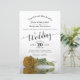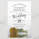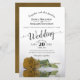 Esta hermosa invitación a una boda asequible presenta un diseño romántico con un único rosa de color ocre dorado de tallo largo que se pone a su lado y se refleja en una piscina de agua. La tipografía presenta caligrafía de escritura de encaje y un diseño sofisticado. La espalda es de color amarillo mostaza. Una forma maravillosa de invitar a tus amigos y familiares a compartir tu alegría en tu día especial.