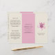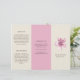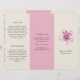 Elegante folleto de tríplios florales con una flor de flores de flores de cerezo pintada de color rosa junto con su nombre de negocio sobre un fondo de marfil. El exterior tiene una plantilla para "Acerca de nosotros", "Nuestra misión" y "Contáctenos" sobre un fondo rosado. El interior tiene varias plantillas para obtener información sobre su negocio en los paneles exteriores y una lista de precios en el panel intermedio. Este diseño de moda es ideal para una peluquería, un salón de belleza o un salón de uñas.