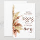 Elegante cartel del juego ¿Cuántos besos?. Disfruta de tu despedida de soltera o fiesta de bachelorette con esta tarjeta de juego personalizable. Ramo tropical de acuarela con pampas secas.