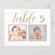 Las elegantes y únicas tarjetas de números de tabla de boda personalizadas incluyen fotos de la infancia del novio y la novia a una edad que corresponde con el número de tabla. Para personalizar: escriba el número de tabla, haga clic en "cambiar" por las fotos predeterminadas para cargar sus propias fotos digitales o escaneadas, y agregue esa tarjeta de número de tabla individual a su carrito de compras. Repita todos los números de tabla que necesite.