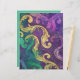Este versátil papel de libro de recortes presenta un diseño vibrante e intrincado que es perfecto para una variedad de proyectos, especialmente aquellos con un tema de Mardi Gras. La parte delantera del papel muestra un rico tapiz de remolinos en tonos dorados, verdes, morados y magenta, sobre un fondo violeta profundo. Las flores ornamentadas y los puntos delicados crean una sensación de movimiento y festividad, que recuerda a la animada y colorida atmósfera de las celebraciones del Mardi Gras. Este artículo es ideal para artesanos, scrapbookers y entusiastas del DIY que buscan añadir un toque de elegancia y festividad a sus proyectos. Se puede usar para hacer tarjetas de felicitación, invitaciones a fiestas, acentos decorativos, o cualquier otro esfuerzo creativo que requiera un diseño audaz y festivo. El reverso del papel presenta un color verde marino sólido, que proporciona un fondo complementario que mejora la estética general y ofrece versatilidad para cualquier artesanía.