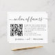 ¡Presentamos nuestra exquisita tarjeta boda! Esta carta encantadora, elaborada con letras elegantes que crean un ambiente sofisticado y atemporal, lleva un mensaje sincero. Invitando calurosamente a sus invitados a participar en su iniciativa "En lugar de favores", simboliza la importancia de devolver. Disfrute de la combinación perfecta de elegancia atemporal y tecnología de vanguardia. Nuestra tarjeta incorpora un código QR personalizado que le permite crear una experiencia única e interactiva. Simplemente introduzca la dirección URL de su propósito de código QR, y observe cómo sus invitados están inmersos en el impacto de su causa elegida. Los propósitos de usar un código QR en una "tarjeta en lugar de favores" pueden variar dependiendo de sus intenciones y objetivos específicos. A continuación se presentan algunos de los propósitos comunes para utilizar un código QR en este contexto: 1- Proporcionar información: con un simple escaneo, los clientes pueden acceder a detalles adicionales sobre la causa que están apoyando. Descubra su misión, comprenda el impacto que crea y aprenda cómo se utilizarán sus contribuciones. Dejemos que se embarquen en un viaje de conocimiento e inspiración. 2- Dirigir a los invitados a una página de donaciones: A través del poder del código QR, los invitados pueden contribuir sin problemas a la organización o causa benéfica elegida. Al enlazar directamente a una página de donaciones, simplifica el proceso y los faculta para hacer una diferencia significativa. 3- Compartir historias o testimonios: Sumérjase en las narrativas personales que iluminan la importancia de su causa. Enlazar el código QR a videos o sitios web que muestren conmovedores relatos, sentidos testimonios y experiencias inspiradoras relacionadas con la causa que estás apoyando. Que sus corazones se movieran y que sus espíritus se animaran. Todos los estilos, colores y tamaños de texto se pueden modificar para adaptarlos a sus necesidades. Si necesitas ayuda o artículos a juego, por favor no dudes en contactarme.