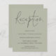 La Recepción De Guión Presupuestario Detalla El Gabinete De Boda Verde De Sabio Claro. Un precio económico menor 4,5" x 5,6" alternativa. Disponible en un ALMACENAMIENTO DE TARJETAS SEMI GLOSS 110 lb que es la opción predeterminada (recomendado para invitaciones), O UN ACCESO DE PAPEL DE LADRILLO DE 80 lb SATIN (ideal para los gabinetes). Los sobres son un extra opcional y son algo más grandes que el tamaño de la tarjeta. Un guión elegante de estilo de escritura a mano para el encabezado y el resto del texto que puede personalizar fácilmente.