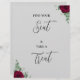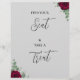Encuentra tu asiento y toma el cartel de boda de rosa rojo de Twin Spirit Designs es una adición ideal a cualquier ceremonia de boda. El diseño tiene un fondo gris, follaje verde y flores rojas.