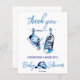 Es un niño zapatos de bebé azules una gorra simple acuarela moderna plantilla casual de tipo de letra tarjeta de agradecimiento. Bebé bebé ducha tarjeta de agradecimiento