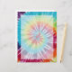 Foto de tela teñida con un patrón de tinte de espiral de arcoiris brillante y colorido.