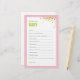 Esta tarjeta de Deseos para el Bebé es una actividad divertida y se mantiene para cualquier Baby Shower. Esta tarjeta viene en un esquema de color rosa, con confetti colorido. ¡La incorporación perfecta a un fiesta de Baby Shower o Baby Sprinkle! Encontrar otros juegos y elementos coincidentes en www.zazzle.com/mypartydesign
