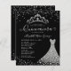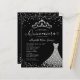 Moderno Glam Black Silver Diamante Tiara Princesa vestido Purpurina Confetti Sparkle Invitación Quinceanera