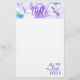 Sorprenda a alguien especial con su propio papel personalizado. Las orquídeas de color azul y púrpura son hermosas, con sus llamativas libélulas. Fácilmente personalizar con su propio nombre y saludo. Versátil para invitaciones de fiestas de bajo presupuesto y perfecto para paletas de color morado, lila o lavanda. Escribir cartas con su propio diseño personalizado de libélula y nombre preimpreso. Un gran regalo para los cumpleaños, el día de la madre, la abuela y más. Las obras de arte florales de acuarela pintadas a mano le proporcionarán un estilo único a su personal.