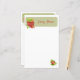 Un diseño sencillo con un frasco de mermelada de fresa al lado de tu nombre en una pancarta verde hoja y una fresa solitaria adornan la esquina inferior derecha. El diseño se repite al revés pero sin tu nombre. Un bonito papel estacionario personalizable adecuado para escribir o escribir una nota, una receta o anotar pensamientos. Una buena idea para un regalo para un amigo por un cumpleaños o navidades.