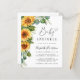 Esta rústica y económica invitación a rociar a los bebés, sin distinción de género, incluye flores de flores de girasol y eucaliptos y "Bebé" en un guión elegante con un toque cardíaco.