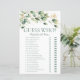 Este hermoso eucalipto moderno de acuarela con oro adivina quién? chapa de juegos de ducha de novia es perfecto para cualquier ducha. Este juego divertido y fácil seguro que trae muchas risas a cualquier ducha de novia. Definitivamente romperá el hielo y hará que todos hablen y se rían. Simplemente dé una hoja a cada invitado (no se olviden de los bolígrafos) y deje que empiece la diversión! Te sorprenderá ver cuántas personas conocen las respuestas. Para hacer de este juego de ducha de novias su propio juego, simplemente seleccione Personalizar esta plantilla y escriba el nombre de la novia y el nombre del novio.