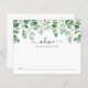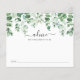 La tarjeta de actividades de la ducha para bebés cuenta con eucaliptos acuáticos y vegetación. La tarjeta de consejo pide a los huéspedes que compartan consejos para que los padres o las madres puedan serlo.