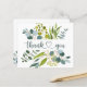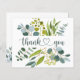 Gracias por tu tarjeta de visita. Este diseño cuenta con un clipart acuático con vegetación eucaliptus y ramas verdes. El texto "Gracias" está escrito en un estilo caligráfico. Personaliza tu propio texto. También puede cambiar el tipo de letra, color y tamaño.