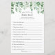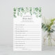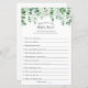 ¿Quién conoce mejor a la novia? Tarjeta de juego con ducha de novia con cascada de agua de vegetación y flores de colores vivos.