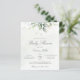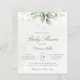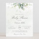 Hermosa invitación a la ducha de bebé barata con eucaliptos acuáticos y hojas de oro.