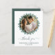 Envíe notas de agradecimiento a sus amigos y familia desde su boda con estas elegantes tarjetas de agradecimiento de eucalipto verde y moderno. Personalizar estas tarjetas de agradecimiento boda con tu foto boda favorita, y mensajes y nombres personales. Este boda de verdor único gracias a las tarjetas hará una impresión duradera, sus invitados, familia y amigos!! DERECHOS RESERVADOS © 2020 Judy Burrows, Black Dog Art - Todos los derechos reservados. Eucalyptus Photo Modern Boda Gracias