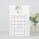 Decoración geométrica a la moda de eucalipto y rosas rosa rubor tarjetas de bingo de ducha con marco geométrico dorado y acuarela de menta a la inversa.
