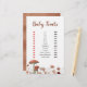 Tarjeta de juegos Fall Boho Mushroom Floral Baby Shower Baby Trats