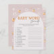 Desafía a tus huéspedes con esta divertida tarjeta de juego Baby Word Scramble, diseñada para que coincida con tu colección de ducha de bebé A Little Pumpkin Is On the Way. Decorado con calabazas suaves y daisies en acogedores tonos otoñales, este juego es la mezcla perfecta de diversión y encanto de otoño. Los huéspedes disfrutarán de las palabras relacionadas con el bebé mientras celebran a la futura madre. ¡Genial para las niñas, niños o duchas neutrales en género!
