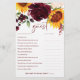 Fall Sunflower & Burgundy Rosas Juego de ducha de novia editable - Find the Guest: Este es el mejor juego para jugar si quieres que tus invitados se mezclen un poco. Es el juego perfecto para romper hielo en la ducha de novia. Puede editar todas las preguntas de este formulario para personalizarlo a sus huéspedes. Haz que tus invitados cuenten sus respuestas correctas...¡el invitado con las victorias más correctas! Haga clic en "Personalizar adicional" para editarlo más.