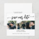 Un elegante y moderno guión moderno de caligrafía en blanco y negro con swirls BUDGET ASEDABLE boda guarda la tarjeta de fecha con un collage de 3 fotos. ++++++++++ Adecuado para cualquier temporada y tema. +++++++++ Fácil de personalizar con tus imágenes y detalles!