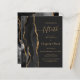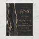 El borde izquierdo de esta elegante invitación moderna para una fiesta de aniversario de 50 años presenta un borde de ágata de acuarela negra recortado con brillo dorado falso. El texto personalizable combina escritura a mano de color dorado, fuentes copperplate e itálicas sobre un fondo negro claro. El reverso presenta un diseño de ágata negra y dorada a juego.