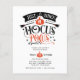 Con las palabras "Just a Bunch of Hocus Pocus" en un esquema de color verde naranja, blanco y negro y estilo de tipografía retro sobre fondo blanco, estas invitaciones para fiestas de Halloween son perfectas para invitar a tus amigos y familia. Personalice con los detalles de su fiesta de Halloween debajo de la letra blanca sobre un fondo negro. ¡Los colores son cambiantes!