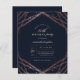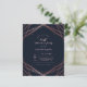Clásica invitación a la fiesta de cumpleaños con luces falsas de Relieve metalizado de oro rosa contra un fondo azul marino. Los detalles de tu cumpleaños se muestran con tipografía elegante que combina un guión y fuentes sans-serif. Como parte de la selección del presupuesto en Zazzle, estas invitaciones vienen en tamaños limitados y reservas de papel. Si necesita un tamaño o material de papel diferente, este diseño se puede transferir a un formato estándar 5x7 utilizando la herramienta de transferencia de diseño para más opciones.