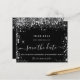 Una chica y de moda Guardar la tarjeta de fecha para una fiesta de cumpleaños número 50 (o cualquier edad). Un fondo negro clásico decorado con un polvo falso purpurina plateado. Personalice y agregue una fecha y un nombre/edad. El texto: Save the Date se escribe con un gran guión de estilo escrito a mano.