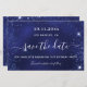 Una chica y de moda Guardar la tarjeta de fecha para una fiesta de cumpleaños número 21 (o cualquier edad). Un fondo azul de color desigual. Decorada con polvo falso purpurina. El texto: Save the Date se escribe con un gran guión de estilo escrito a mano.