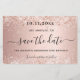 Una tarjeta Save the Date para una fiesta de cumpleaños número 30 (o cualquier edad). Un fondo metálico dorado subió decorado con un polvo falso purpurina. Personalice y agregue una fecha y un nombre/edad. El texto: Save the Date se escribe con un gran guión de estilo con letras a mano y a la moda con guiones.