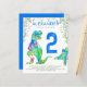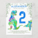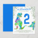 Este T. Rex rugiente y colorido y este dulce estegosaurio multicolor invitan a los fanáticos de los dinosaurios a una fiesta de cumpleaños número 2 en una jungla prehistórica para amantes de los dinosaurios. Personalice esta invitación de Tyrannosaurus y estegosaurio agregando el nombre del niño o niña que cumple años, el número del cumpleaños y los detalles de la fiesta y estará listo para una divertida fiesta de cumpleaños de dinosaurios jurásicos con un audaz tema azul. Todas las especies de dinosaurios son bienvenidas. Ilustraciones de dinosaurios de la era jurásica prehistórica, obra de arte original de la artista Catherine Sweetman.
