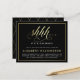 Invitación a la Fiesta de Cumpleaños Presupuestaria de Oro y Negra por Eugene Designs. Envíe estas invitaciones minimalistas en negro y oro y empiece su fiesta sorpresa con estilo! En el frente, en un elegante guión de estilo escrito a mano está el texto "shhh..." en falso Relieve metalizado de oro. Al revés, hay un elegante patrón de Relieve metalizado de oro falso sobre fondo negro.