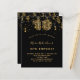 Una invitación moderna, elegante y glamurosa para una fiesta de 18 años. Un fondo negro, decorado con confeti. El nombre está escrito con una escritura de estilo con letras a mano moderna. Personalice y agregue los detalles de su fiesta. El número 18 está escrito con un tipo de letra a la moda, un patrón de leopardo.