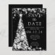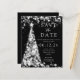 Elegante Fiesta de Navidades / Fiesta de invierno / Fiesta de vacaciones / Fiesta de Navidades corporativos invitación "Guardar la fecha" con árbol de Navidad plateado sobre fondo negro.