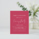 Hay dos opciones de papel entre las que elegir para este tamaño (4,5 x 5,6") en el rango de presupuesto. Para este producto, recomendaría el semi-brillo que es una tarjeta de 110 gsm, similar en grosor a una postal. La opción Satin es un papel mucho más delgado 80gsm. El valor predeterminado se establece en semi brillo. POR FAVOR, TENGA EN CUENTA QUE HAY UNA por hoja. Invitación a la fiesta de Bodas Magenta Presupuestaria. Un conjunto de estilo escrito a mano para el Fiesta de la noche y el resto del texto que puedes personalizar fácilmente. El texto y los colores de fondo se pueden cambiar a cualquiera o a su elección mediante la opción personalizar adicional.