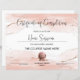 Elegante certificado moderno de mármol rosa y dorado para tu curso de maquillaje