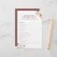 Añade un toque rústico de brillo a tu ducha de novia con el Flor Acuarela que conoce el mejor juego de novias! Este juego delicioso permite a los clientes de las duchas de novias probar lo bien que conocen a la futura novia. Con preguntas reflexivas sobre la vida, preferencias y relación de la novia, este juego fomenta momentos de risa y dulce nostalgia. Es una manera maravillosa de celebrar a la novia antes de su gran día. El hermoso diseño floral acuático presenta flores silvestres vibrantes con un ambiente bohemio y moderno. Es el acento perfecto para un boda rústico y caprichoso o una ducha de novia.