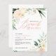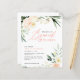 Invitación a ducha de boda con flores de color verde y melocotón. Parte de una colección.