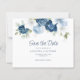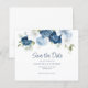 Boda con presupuesto de ramo floral floral moderna y elegante de color de agua floral, azul polvoriento, blanco y marino, ahorrando la tarjeta de fecha. La tarjeta incluye un script "Save the Date", que puede cambiarse a un tipo de letra de su elección que está disponible aquí cuando pulse el botón "Personalize".