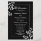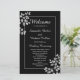Elegante y elegante programa de bodas con bordes florales plateados, con un bonito diseño. El texto puede ser personalizado para el día de tu boda, aniversario o cualquier tipo de celebración.