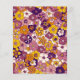 Patrón floral retro en amarillo y morado.