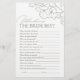 Entreténgase a sus huéspedes con este divertido juego de ducha de novias "quién conoce mejor a la novia", que incluye un elegante ilustracion floral dibujado a mano y detalles modernos de tipografía de escritura, en color verde y blanco oscuro, sencillo y romántico. Personalizable completo con cualquier color que coincida con el tema boda. Vea todos los juegos de ducha de novia en colección.