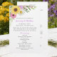 Guide guests through your ceremony with this elegant wedding program featuring a romantic watercolor floral design inspired by a blooming spring garden party style and cheerful summer flowers. Soft sunflower, delicate daisies, and flowing romantic wildflowers are accented with graceful boho chic botanical details in beautiful purple, pink, and green tones. Perfect for outlining your ceremony order, wedding party, readings, and special moments, this daisy program coordinates seamlessly with your invitations, RSVP cards, menus, signs, and full floral wedding stationery suite. Ideal for garden weddings, outdoor ceremonies, and floral-themed celebrations.