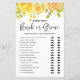 Adivina quién lo dijo. ¿La novia o el novio? Un divertido juego de ducha para añadir a tu evento. Cuenta con ilustraciones acuarelas de guirnaldas florales amarillas con un patrón floral a juego. Dijo que este floral amarilla es perfecto para duchas de novias de primavera y verano y fiestas de boda.