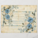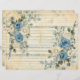 Flores antiguas de color azul y blanco angustiadas pagarés de papel de periódico basura de scrapbook.
